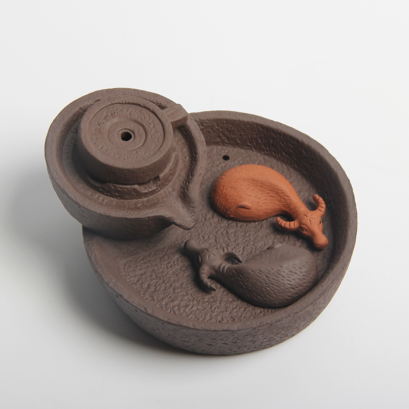 Creative purple sand reflux aroma furnace ceramic cow turning to the sandal chamber of sandas