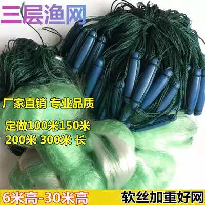 Green Silk three-layer fishing net sinking net 8 meters 10 meters 15 meters 20 meters high adhesive net fishing mesh plastic floating rope drop