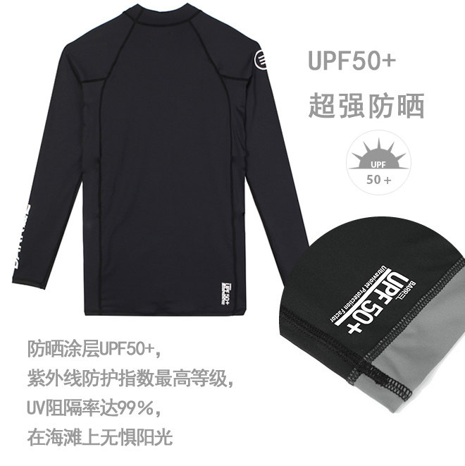 South Korea's new men's sports fitness running tight long sleeves sunscreen dry surf diving suit black swimsuit