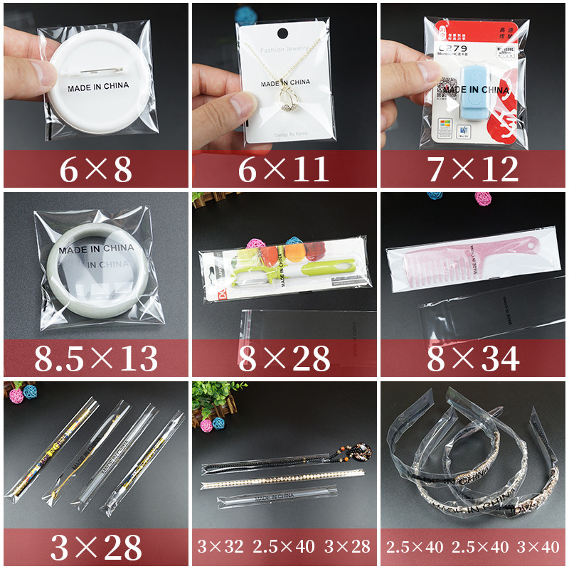 OPP self-adhesive bag printing letters MADE IN CHINA Made in China packaging bracelet chain head hoop jewelry slender