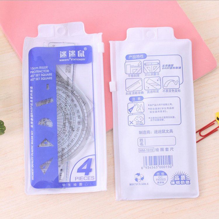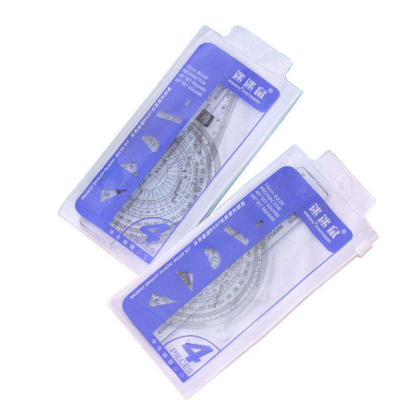 Versatile ruler suit minimalist wind student drawing ruler 4 pieces of set ruler triangular ruler sleeve full 18