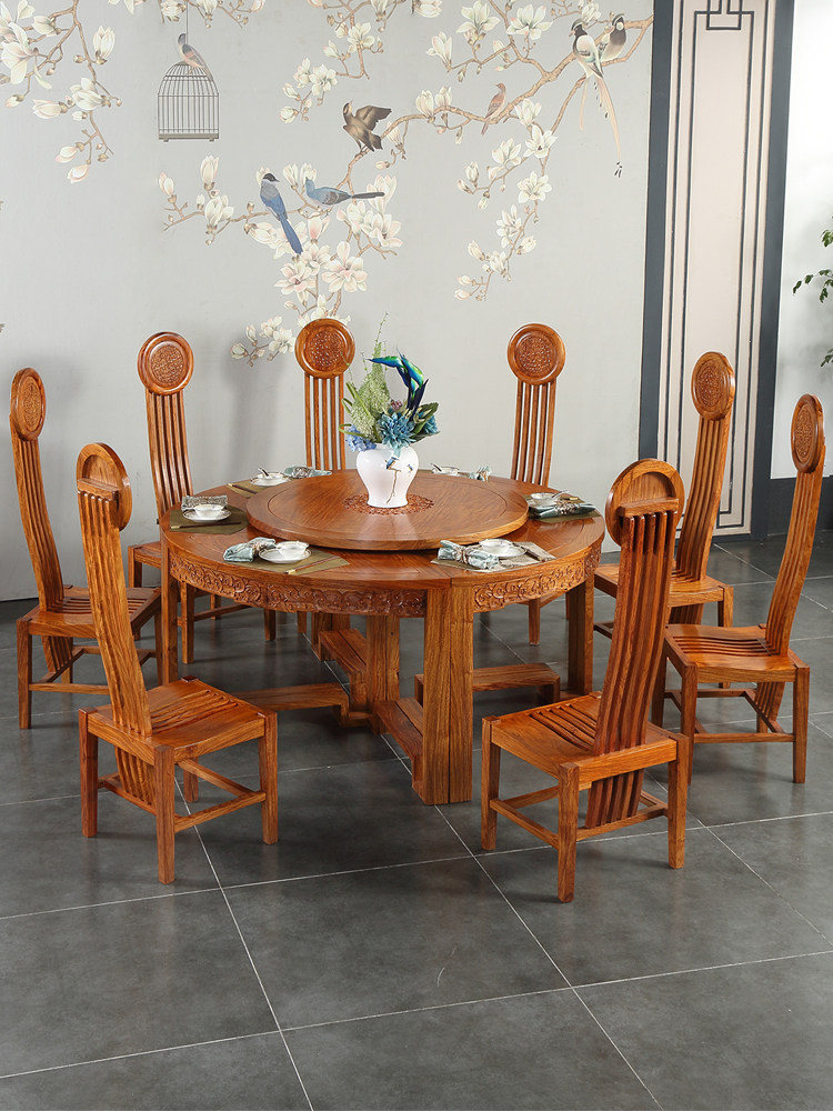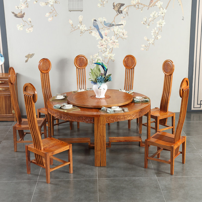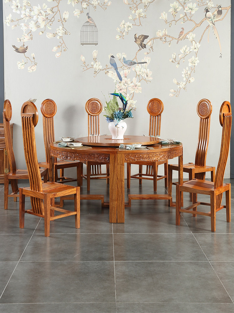 Red Wood Round Table Dinner Table New Chinese Style Hedgehog Purple Sandalwood Myanmar Flowers Pear Wood Big Fruit Purple Sandalwood Porcelain Supear Solid Wood Furniture