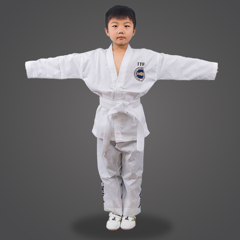 Quality ITF Dousuits for children Adult white collar itf taekwondo training with autumn and winter giveaways