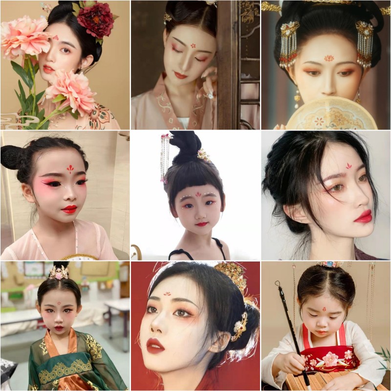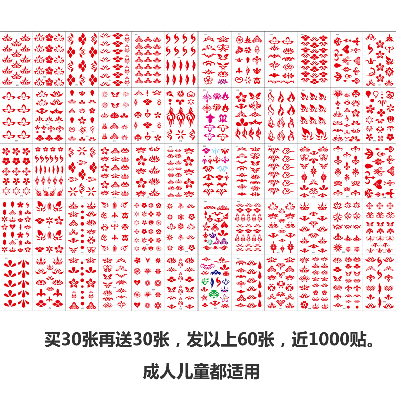 Floral eyebrow heart sticker Hanfu costume flower print beauty tattoo sticker waterproof female persistent sexy photo forehead sticker