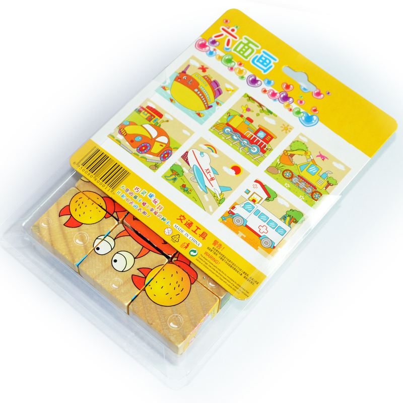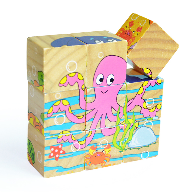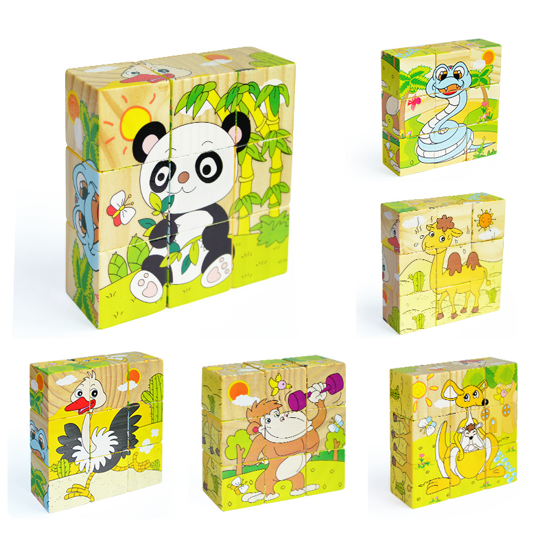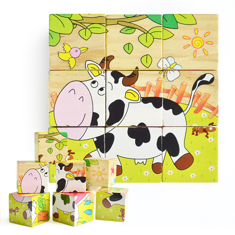 Wooden puzzle 9 pieces six-sided painting 3D three-dimensional wooden jigsaw puzzle large building blocks early education educational toys for children and babies