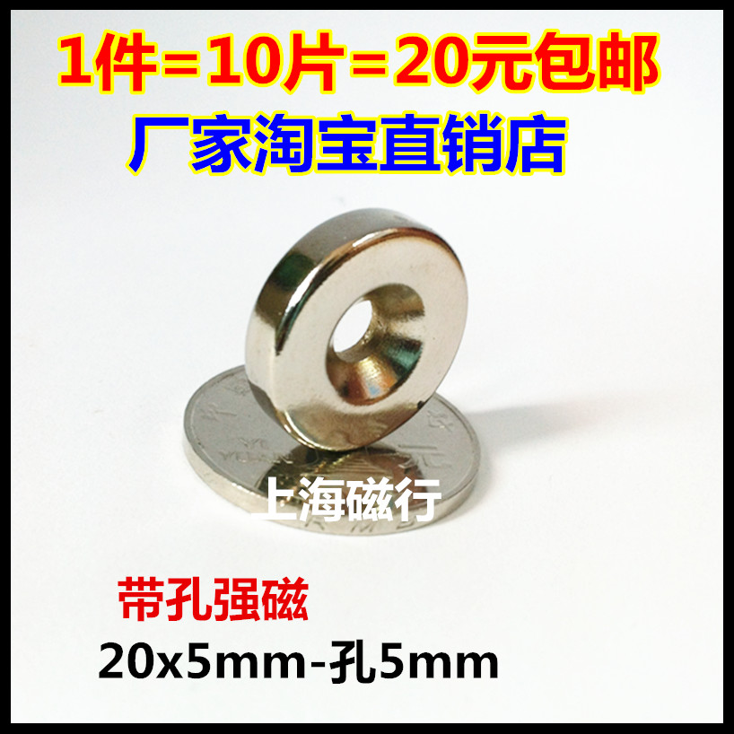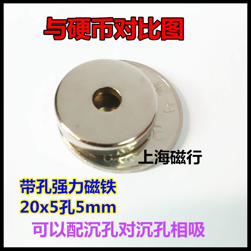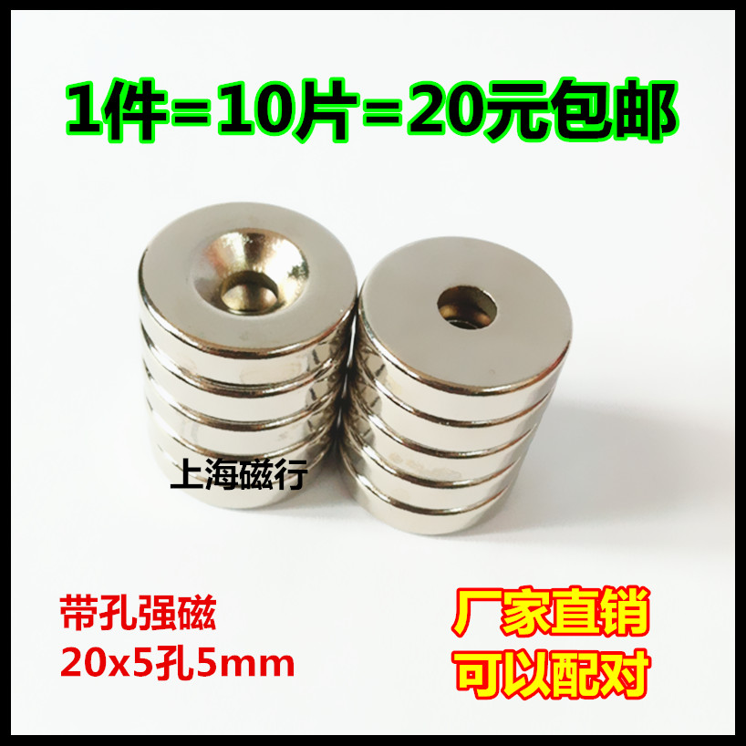 1 piece of 10 pieces of strong magnetic magnet 20x5mm round hole magnet NdFeB strong magnetic steel strong magnetic steel