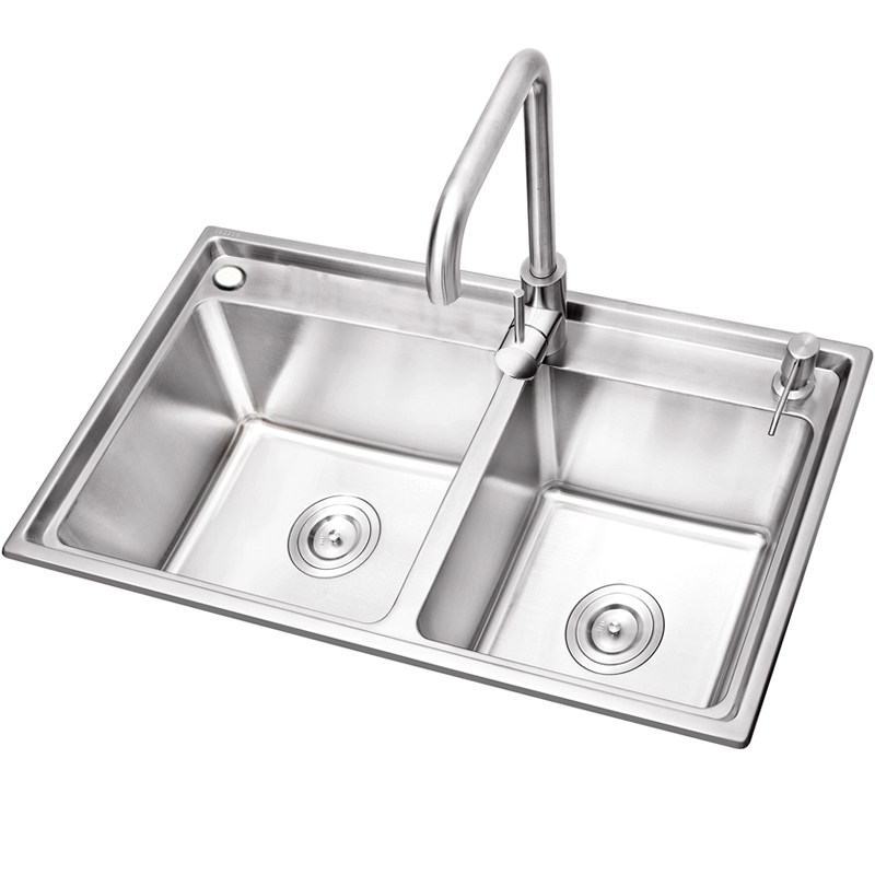 Thickened sink double sink wash vegetable basin SUS304 stainless steel left and right symmetric same large kitchen dishwashing pool package
