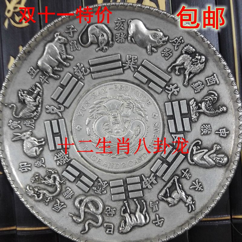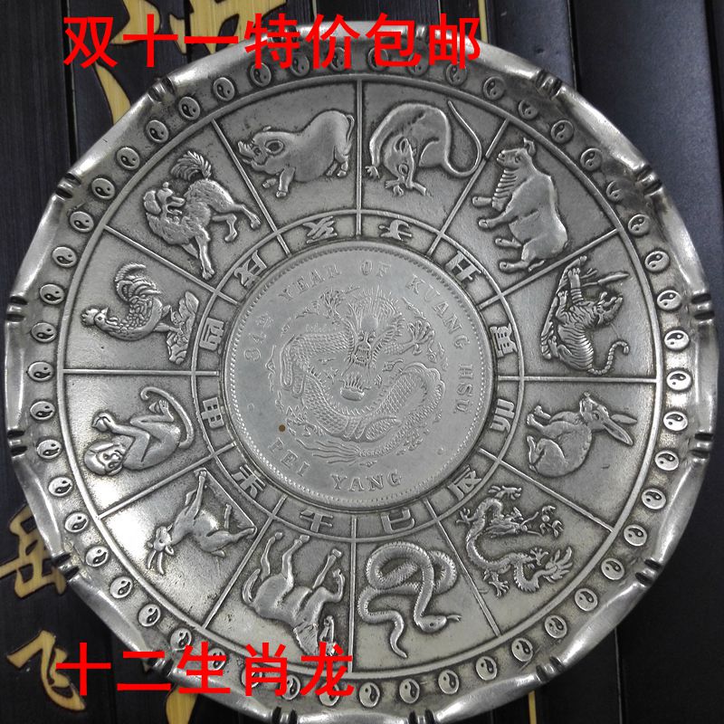 Ancient Play Miscellaneous Collections Bronze Silver Plated Sauces Zodiac Zodiac Zodiac Dragon Bamboo Side Dragon Silver Dollar Plate Bogu Pendulum Pieces