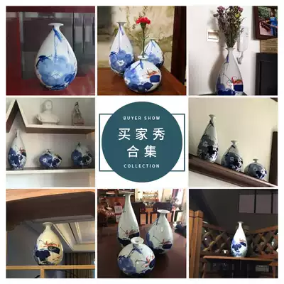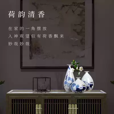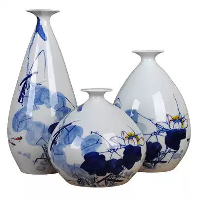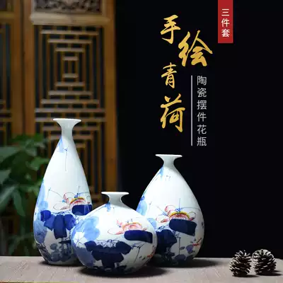 Jingdezhen porcelain vase hand-painted Qinghe three-piece home decoration decoration flower arrangement decoration craft living room ceramic decoration