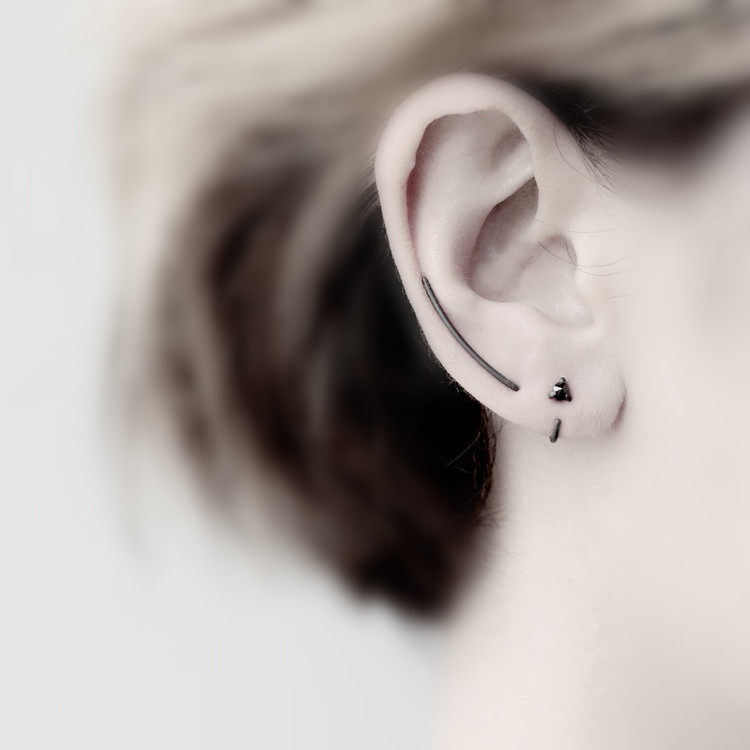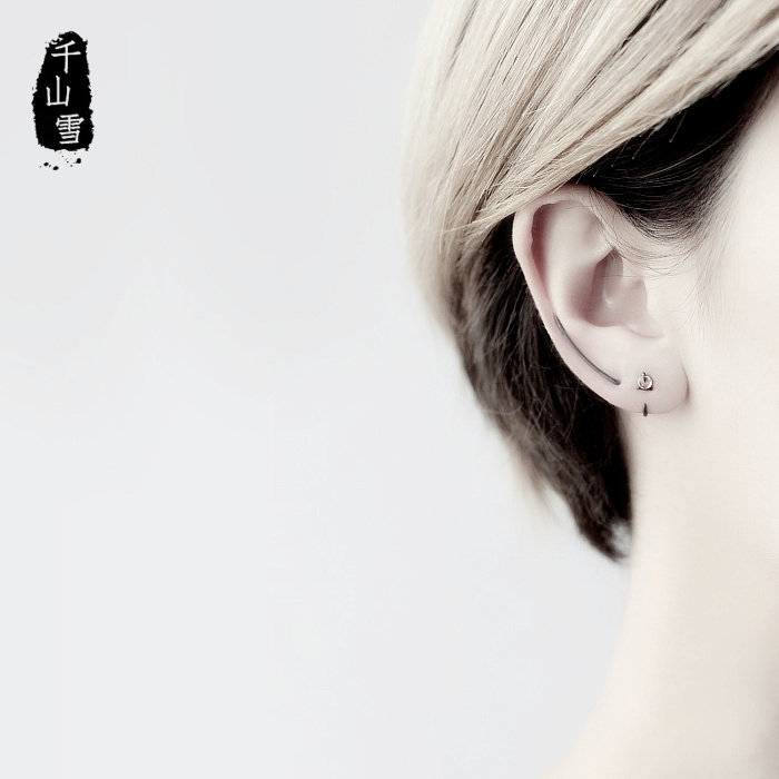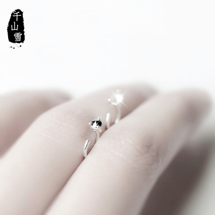 925 sterling silver earrings, Korean temperament, simple personality, earrings, earbone rings, men and women, hypoallergenic, tide black, creative single