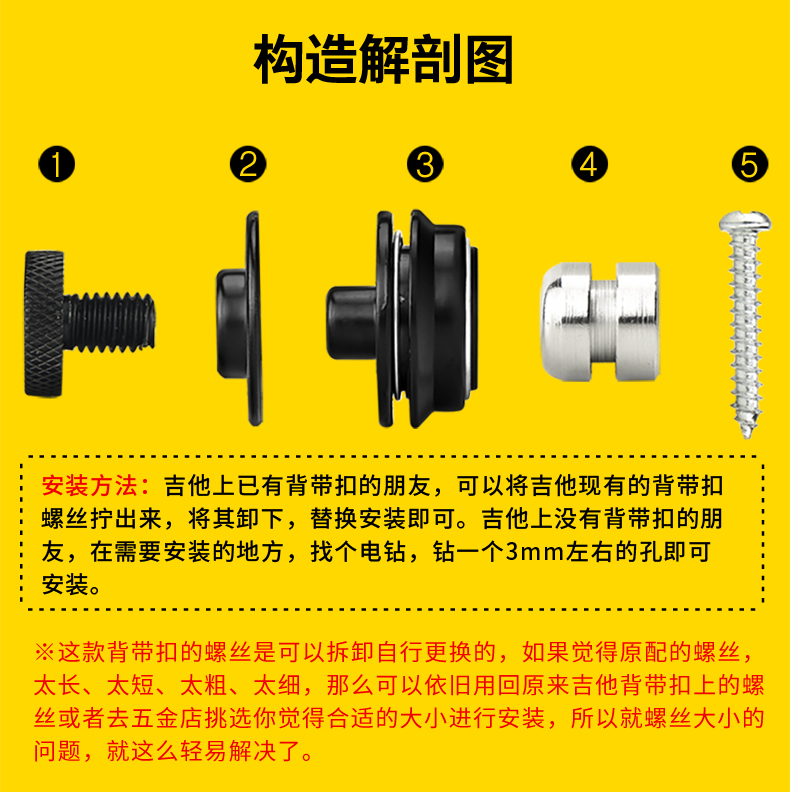 Guitar strap buckle strap stud bass folk electric guitar strap lock clasp wooden guitar tail stud button stud anti-tripping