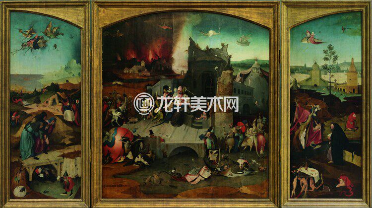 The Triptych of the Temptation of St. Anthony in Bosch Electronic illustration of the Dutch biblical theme of the altarpiece of St. John's Church