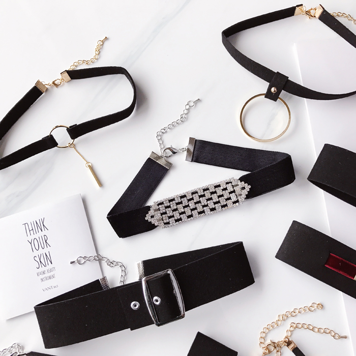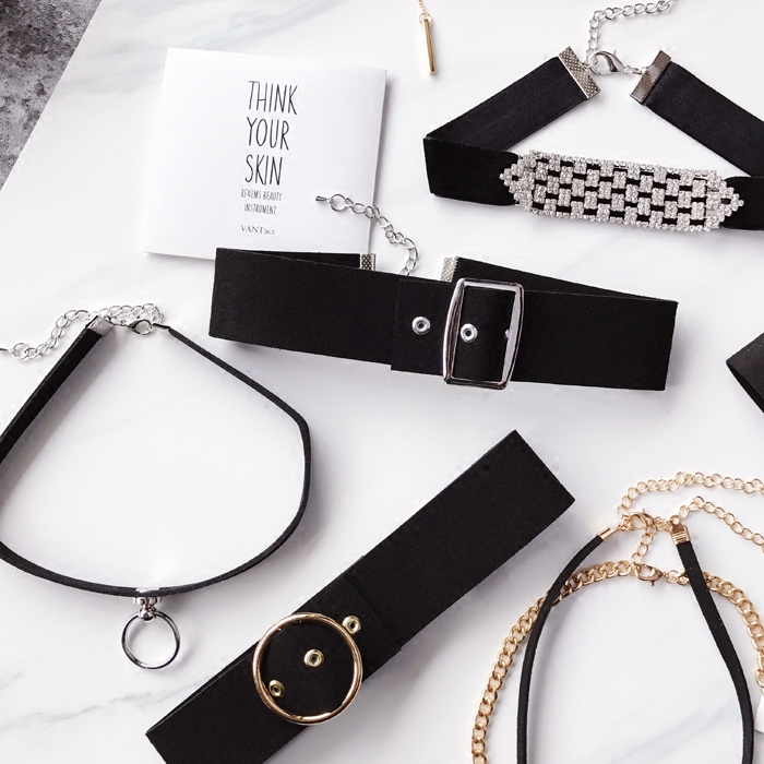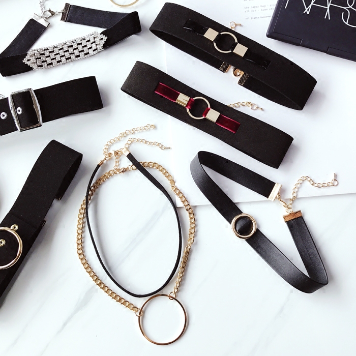 Japan and South Korea new European and American style wild velvet collar short ring large ring metal necklace necklace female collarbone chain