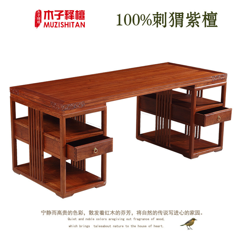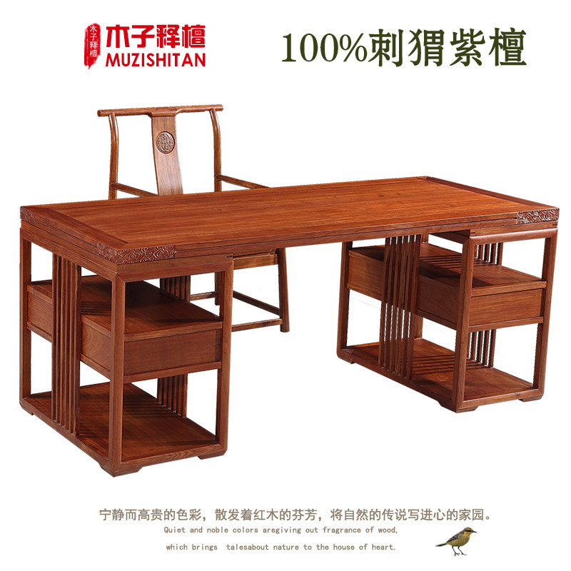New Chinese Redwood Desk Desk Bookshelf Hedgehoea Pearl Pearl Pearl Furniture Furniture All Pure Solid Wood
