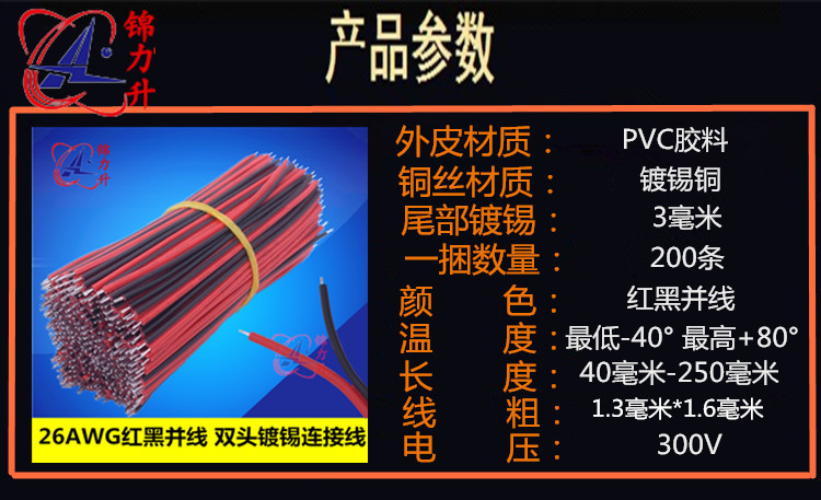 1007-26AWG red black combined wire double-head tinted connection wire Tsai electronic wire harness wire harness flat wire