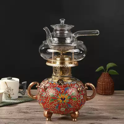 Cloisonne tea lamp Kerosene lamp Air lamp Copper tea stove Fire water lamp Retro Kung Fu tea kettle kettle set