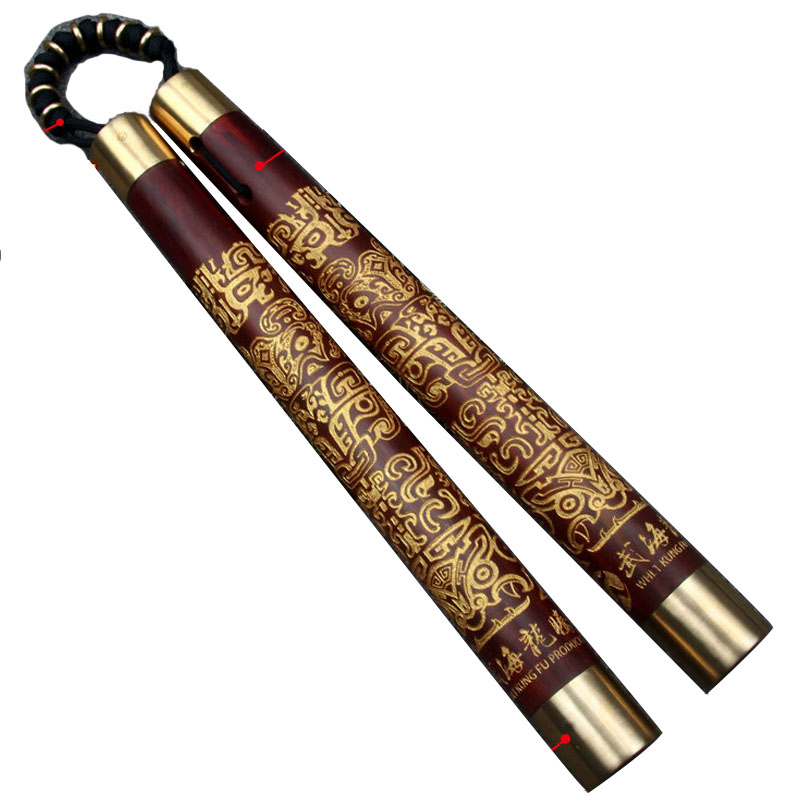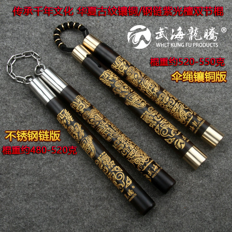 Stainless steel chain version A pair of umbrella rope inlaid copper version A pair (special price) Rosewood inlaid copper only a pair of leaflet rosewood inlaid copper umbrella rope version leaflet rosewood steel chain Huaxia ancient grain nunchaku Sandalwood leaflet Rosewood standard nunchaku