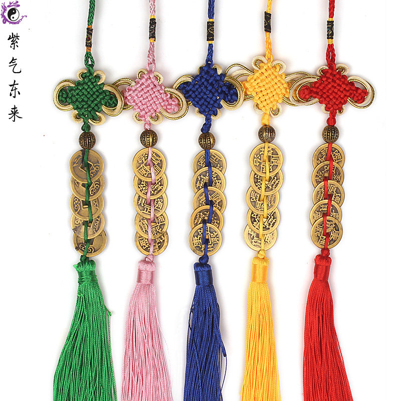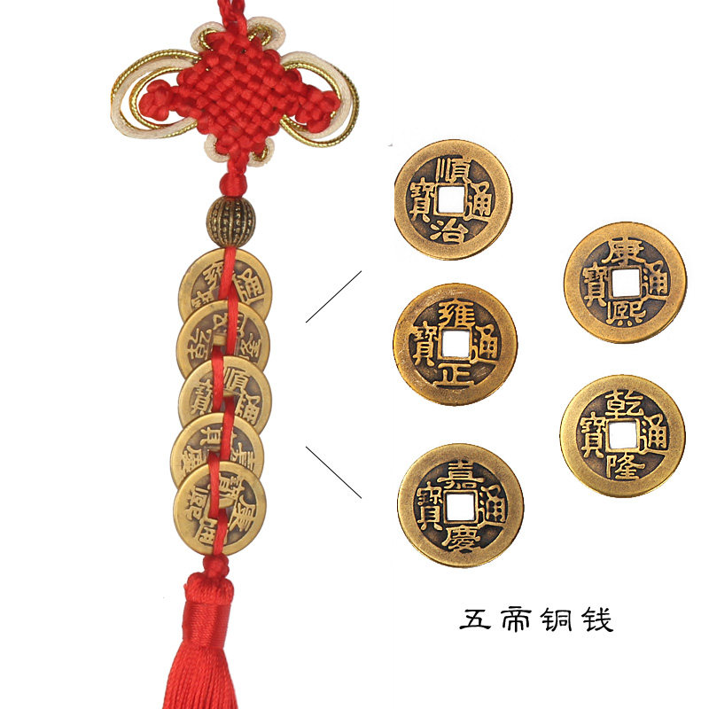 Five emperors bronze Money hanging decoration Feng Shui Five Emperors China Knot Plum Blossom ten Emperors Bronze Money Pendant Money Strings Decorative Swing Accessories