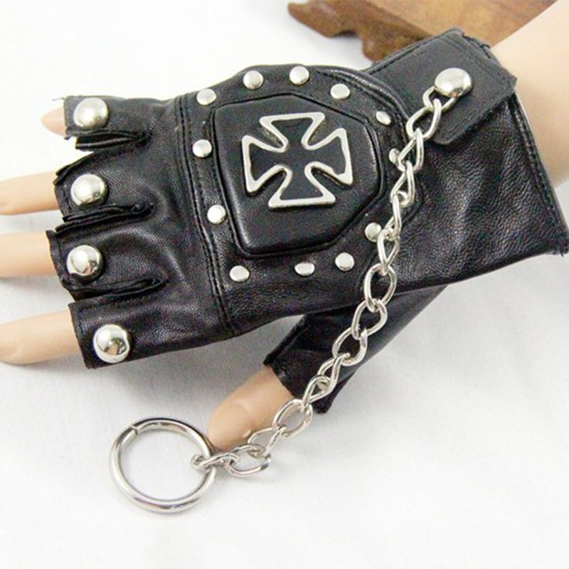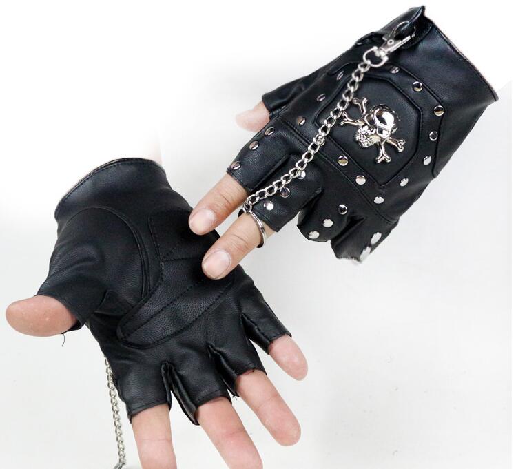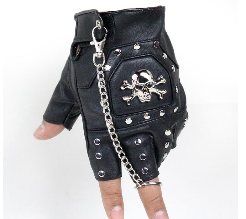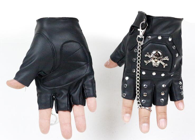 Punk Cross Ghost Head Pendant Chain Small Sheep Dermis Skull Head Half Finger Rivet Bar Nightclub Men's Motorcycle Gloves