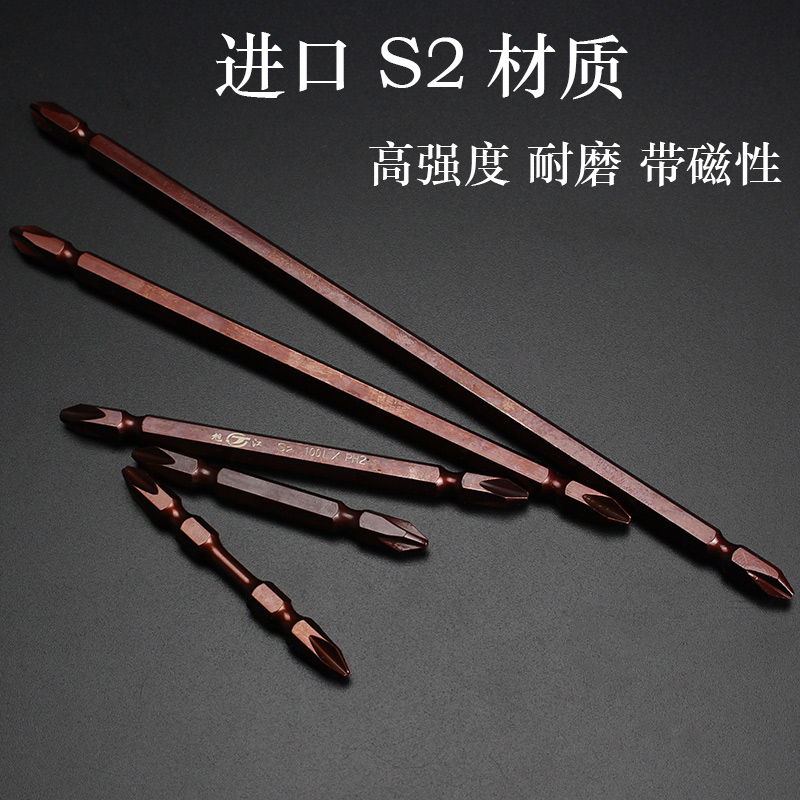 Double-headed cross screwdriver head imported electric drill electric screwdriver batch head strong magnetic wind batch extension screwdriver S2PH2