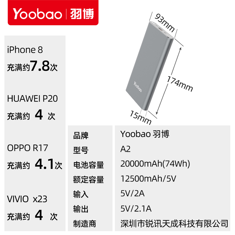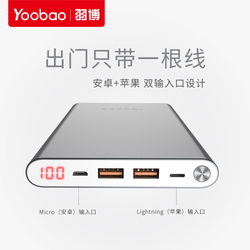 Yubo mobile charger 20000mAh large capacity portable suitable for Apple iphone13 Android VIVO Huawei OPPO mobile phone universal fast charge ultra-thin power bank official authorization