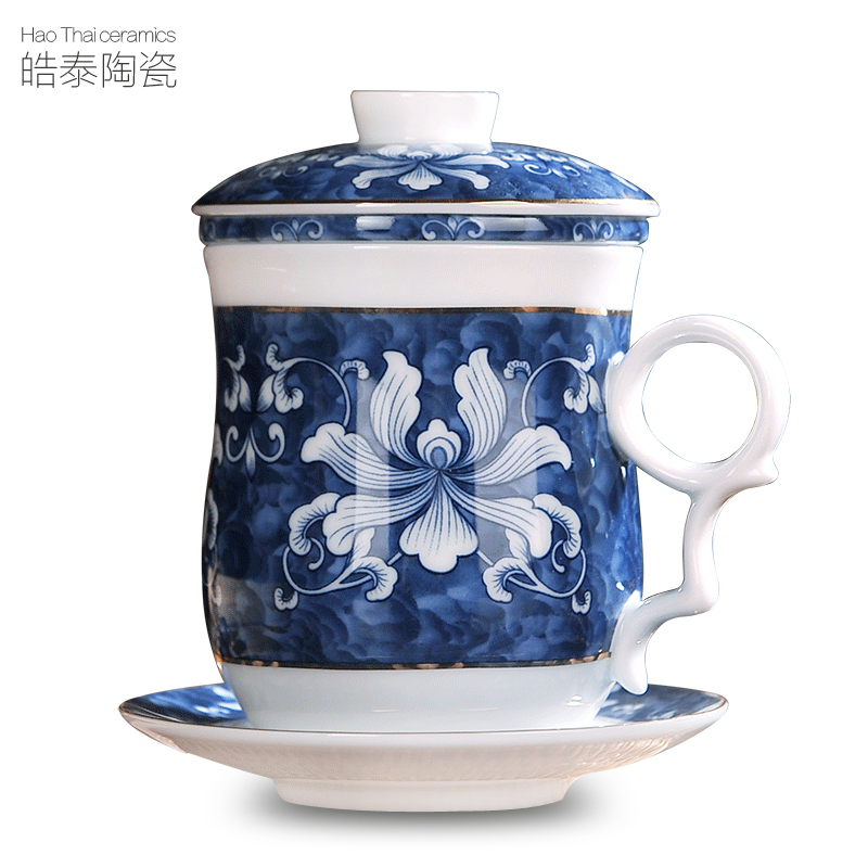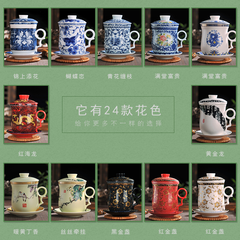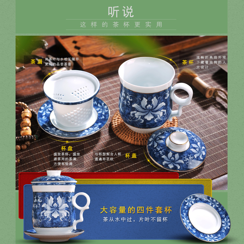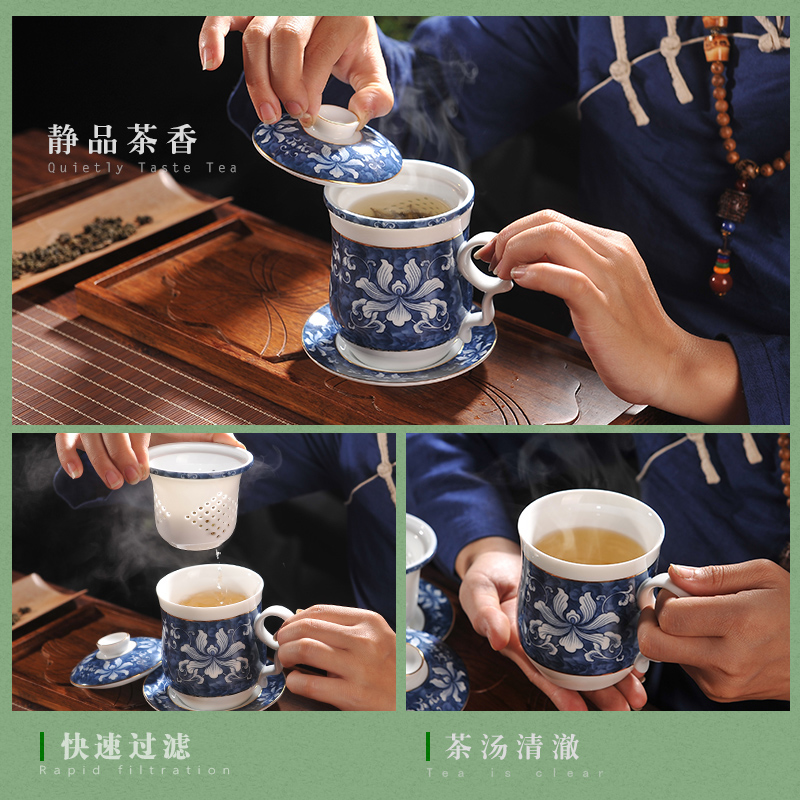 Jingdezhen tea cup ceramic filter with lid Cup Household Office cup water cup blue and white porcelain meeting Cup