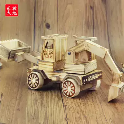 Factory direct sales creative toys Wooden bulldozer model Wooden car model craft gift decoration Children's toys
