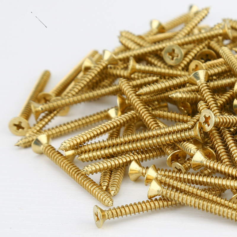 Pure copper wood screw brass countersunk head self-tapping screw flat head gold antique furniture screw M3 5M4 M2