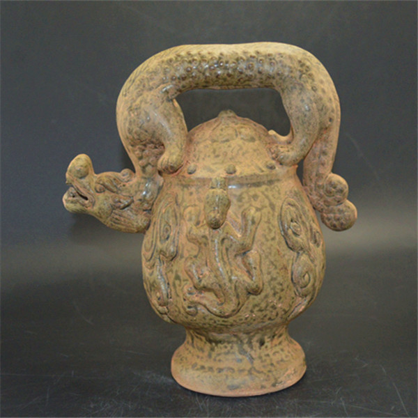 Song Yue Kiln Green Glazed Dragon Tattooen beams turn back to the pot to make old imitation Song Dynasty ancient porcelain pot Antiquity collection Home Swaying Accessories
