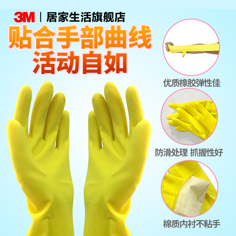3M Sikho Household Gloves Kitchen dishwashing clothes household latex durable length