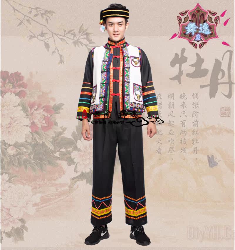 New long-sleeved Yi ethnic men's clothing and Miao ethnic performance costumes dance costumes Lahu ethnic and Miao ethnic performance costumes