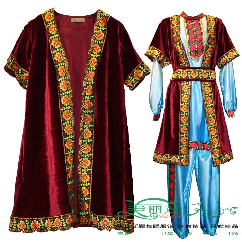Xinjiang Dance Show Clothing Men and Adult Uighur Ethnic Nation Long Vest Vest Professional Stage Black Red Swing