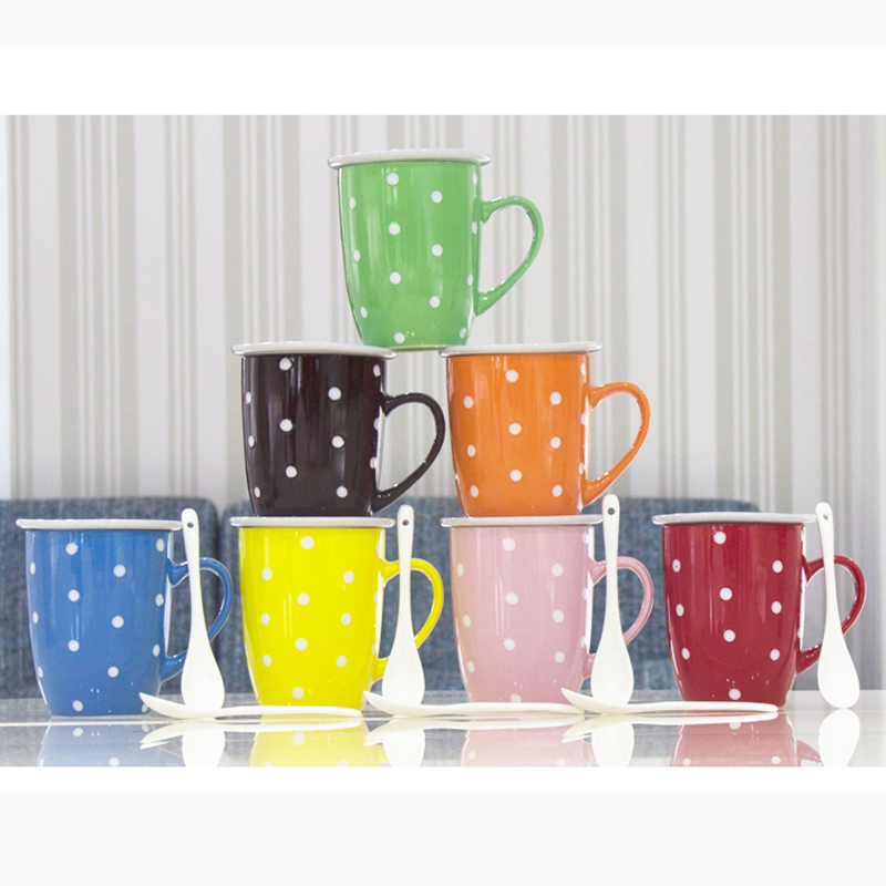 Cup Ceramic cup with lid spoon Simple coffee cup Bone china mug Large capacity milk cup Creative couple water cup