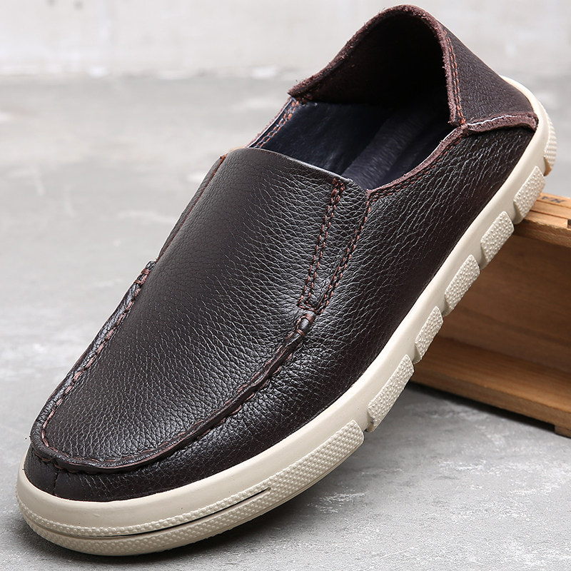 Foreign trade men's shoes leather bean shoes casual shoes round head layer bull skin lazy shoes low gang soft sole