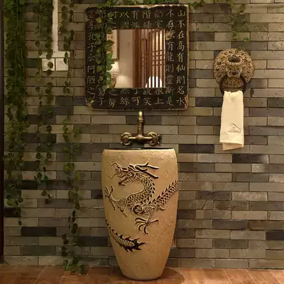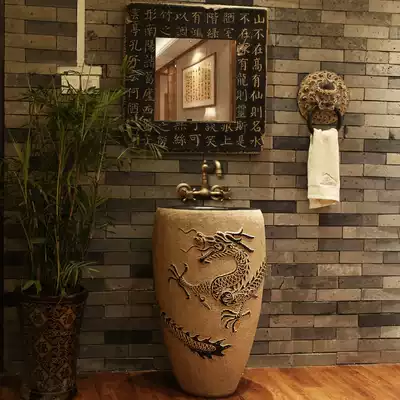 Chinese washbasin cabinet combination Floor-to-ceiling restaurant washbasin cabinet Antique art washbasin cabinet Faucet hot and cold