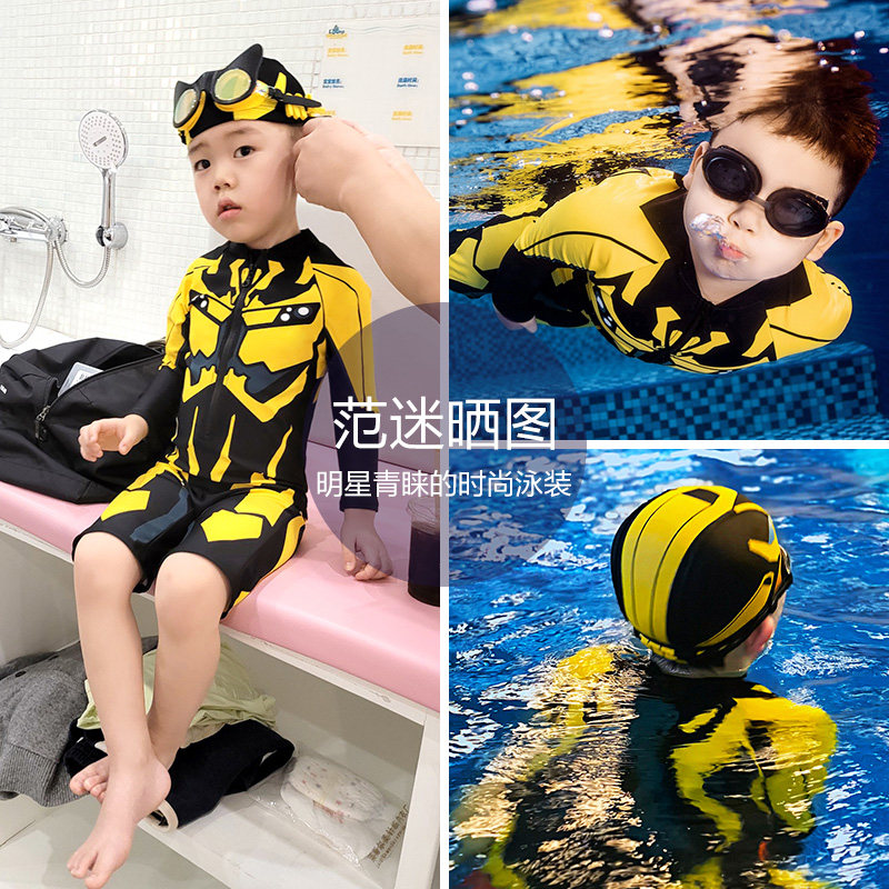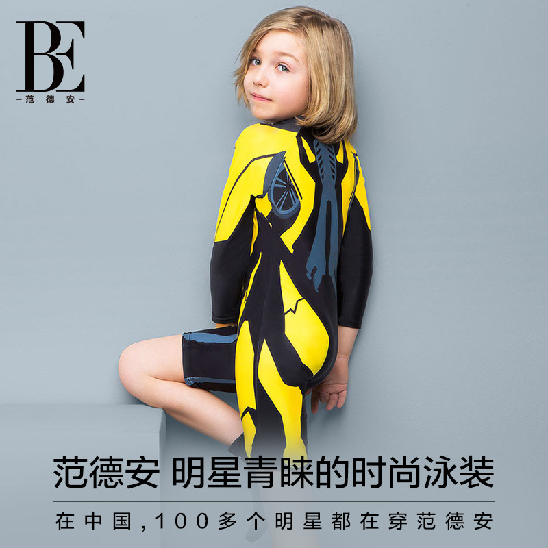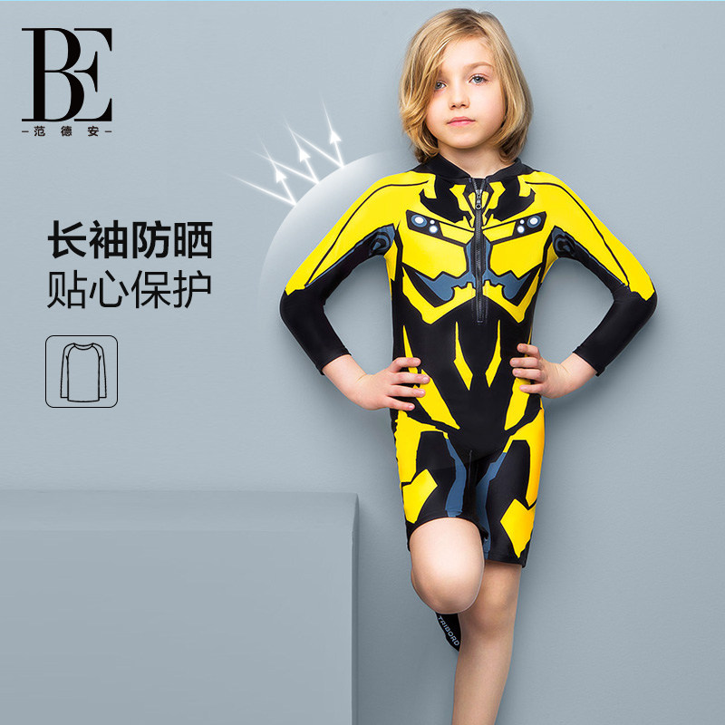 BE Van Der Ian Children Boy Conjoined Long-sleeved Swimsuit Sunbathing Suit CUHK Tong Swimming Swimsuit Flat Angle Speed Dry