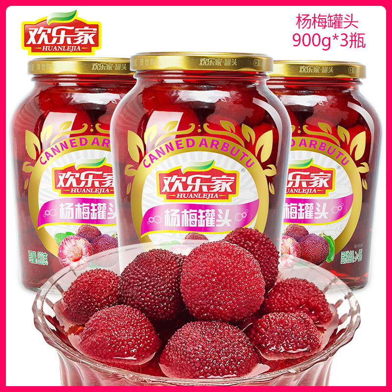 Happy Home Bayberry canned 900gX3 large cans of fresh canned fruit full box of canned fruit wholesale