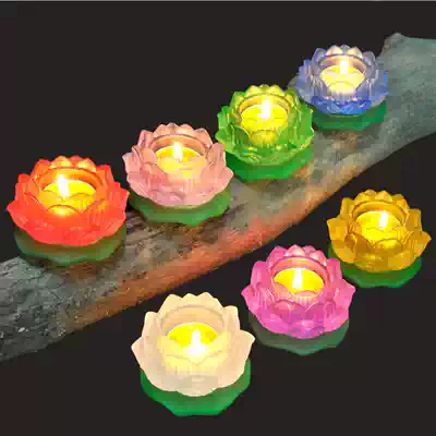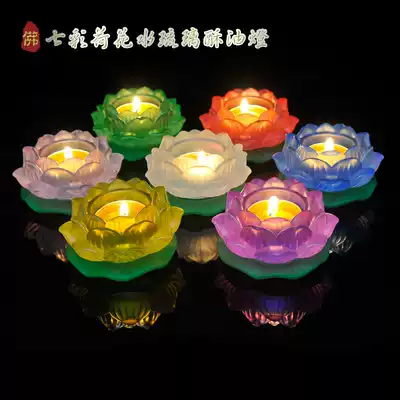 Changming ancient method seven-color water-colored glaze lotus Candlestick ghee lamp holder lamp holder lamp holder for Buddhism supplies