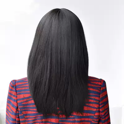 Middle-aged and elderly wigs long straight hair mother after chemotherapy, long hair full head cover real hair realistic black long hair
