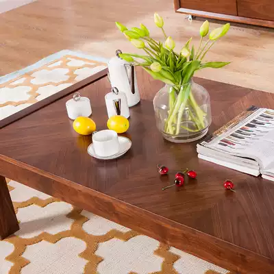 (Special clearance)Jianwei modern walnut color coffee table Living room rectangular coffee table glass corner