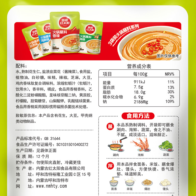 Prairie Red Sun Hot Pot dip 180g*6 bags of household spicy and delicious mixed sauce and peanut butter