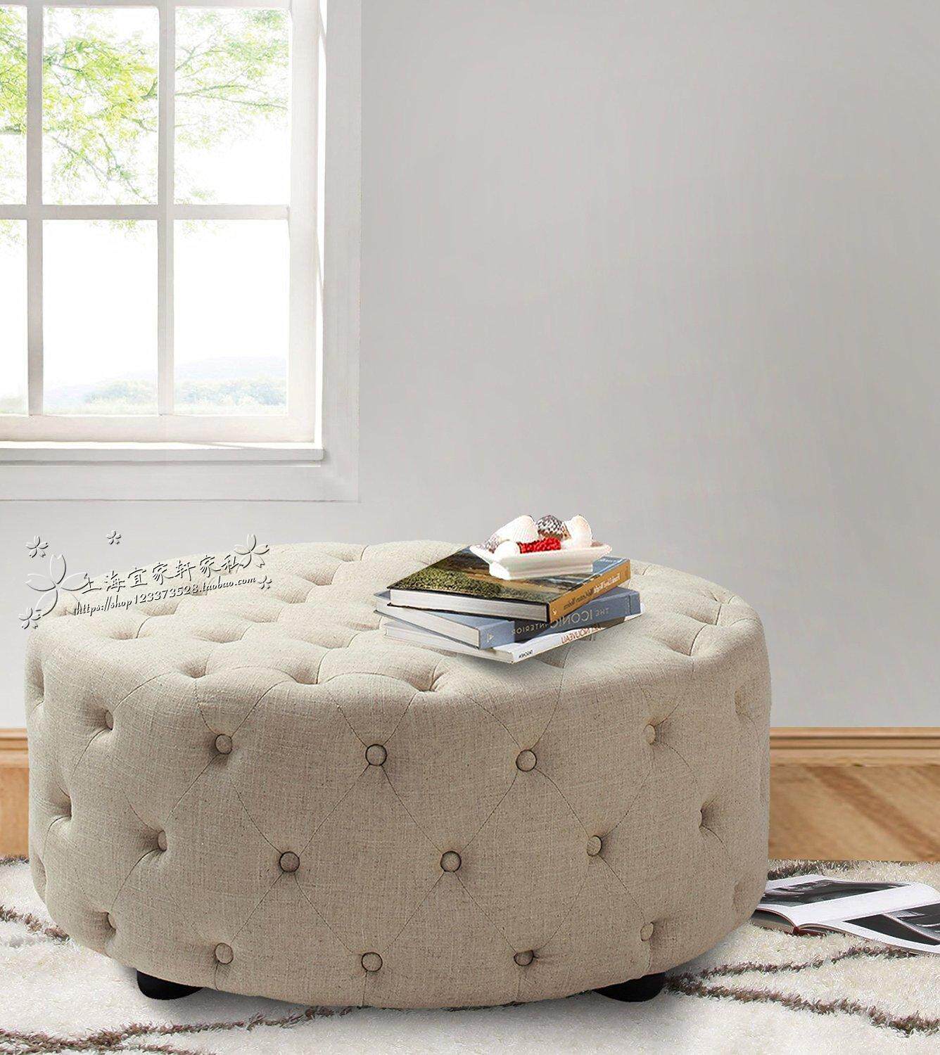 European-style fabric changing shoe stool cloakroom stool shopping mall clothing store fitting room round sofa stool beige cloth pier