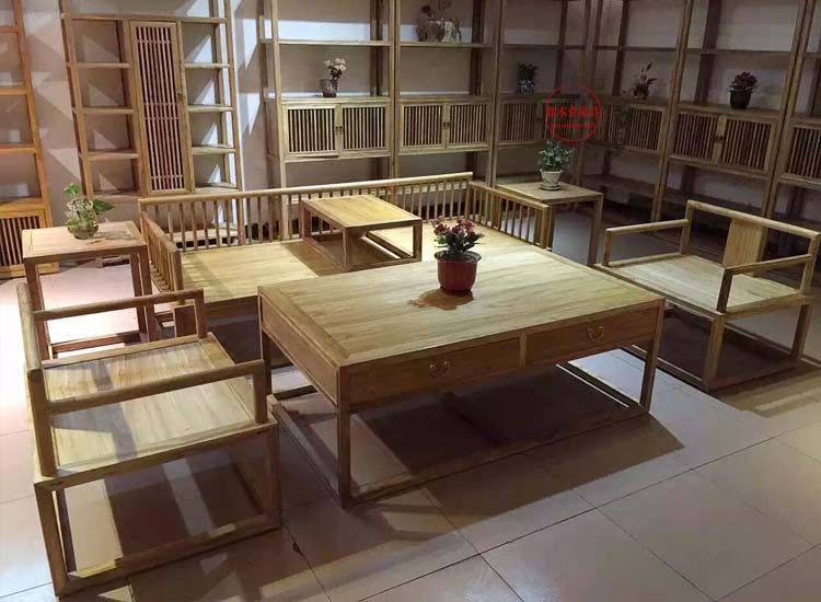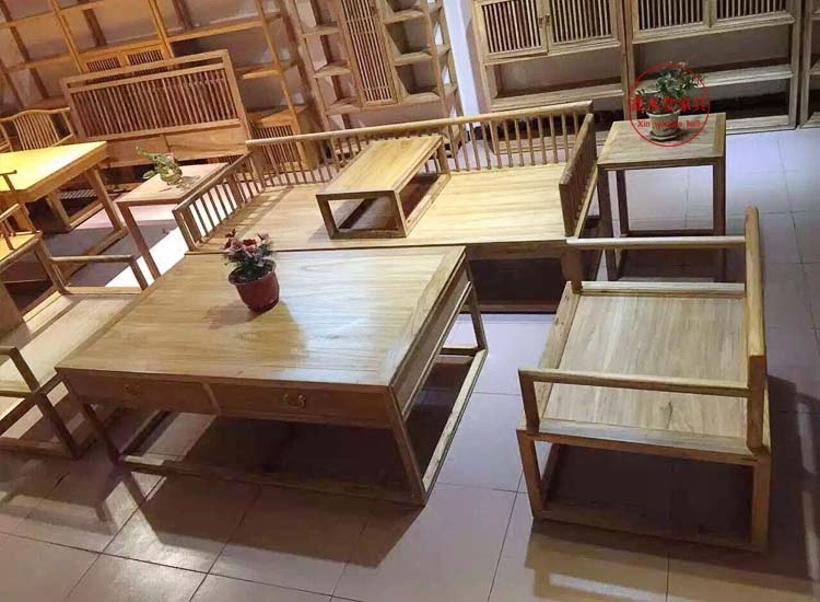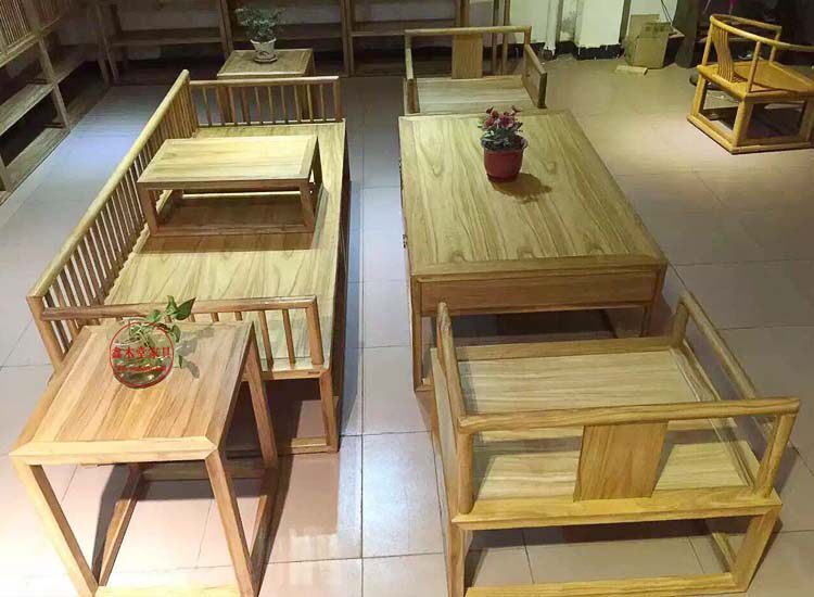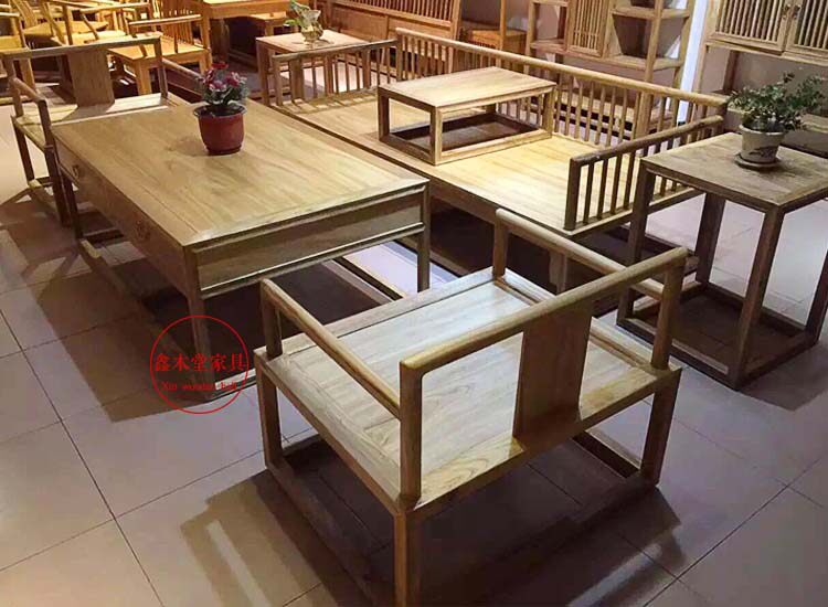Old elm new Chinese style paint-free solid wood sofa modern minimalist living room sofa four-piece combination Zen sofa chair