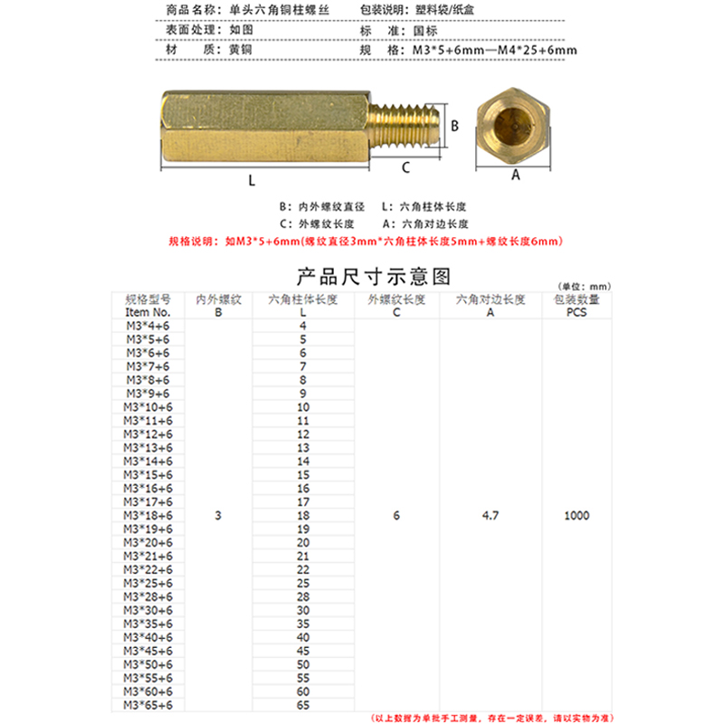 M4 single-pass single head hexagonal copper column screw motherboard host shell copper column copper column nut copper stud isolation column support column