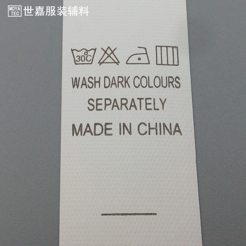 Ready-to-Stock Clothing Apparel English Composition Standard Washing Water Label Made in China Washing Water Mark Washing Label Trademark Side Mark