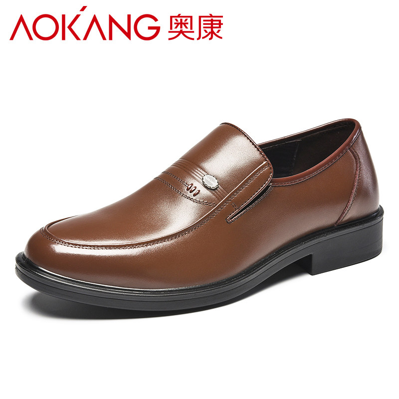 Aokang Men's Shoes Men's Business Dress Shoes Leather Slip-On Shoes Leather Middle-aged Dad Shoes