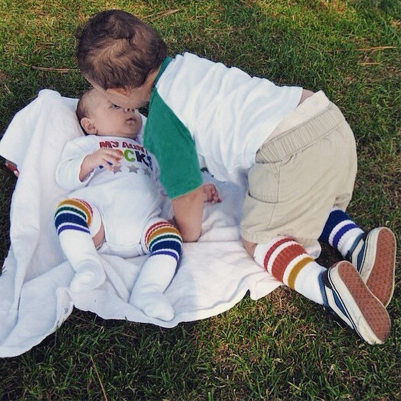 American Pride Socks Baby socks Autumn and winter children's cotton socks thick stripes warm middle tube baby rainbow