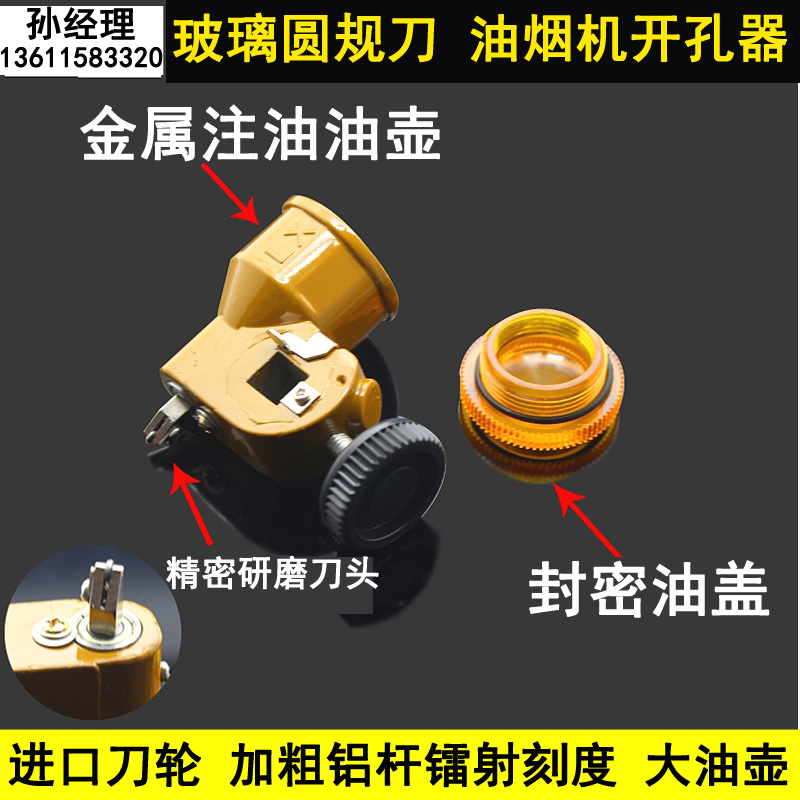 Glass compass knife hood hole opening machine Oil injection suction cup glass drawing knife Glass cutting round knife