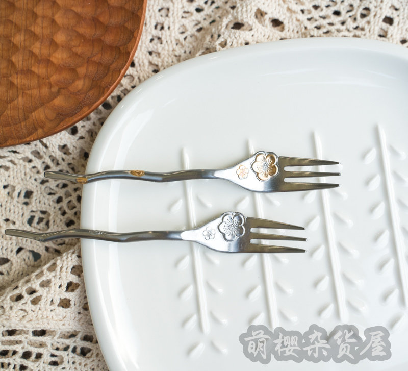 Spot : Japanese new lagoon three pieces of plum spoon fork stainless steel gold - plated coffee stirred