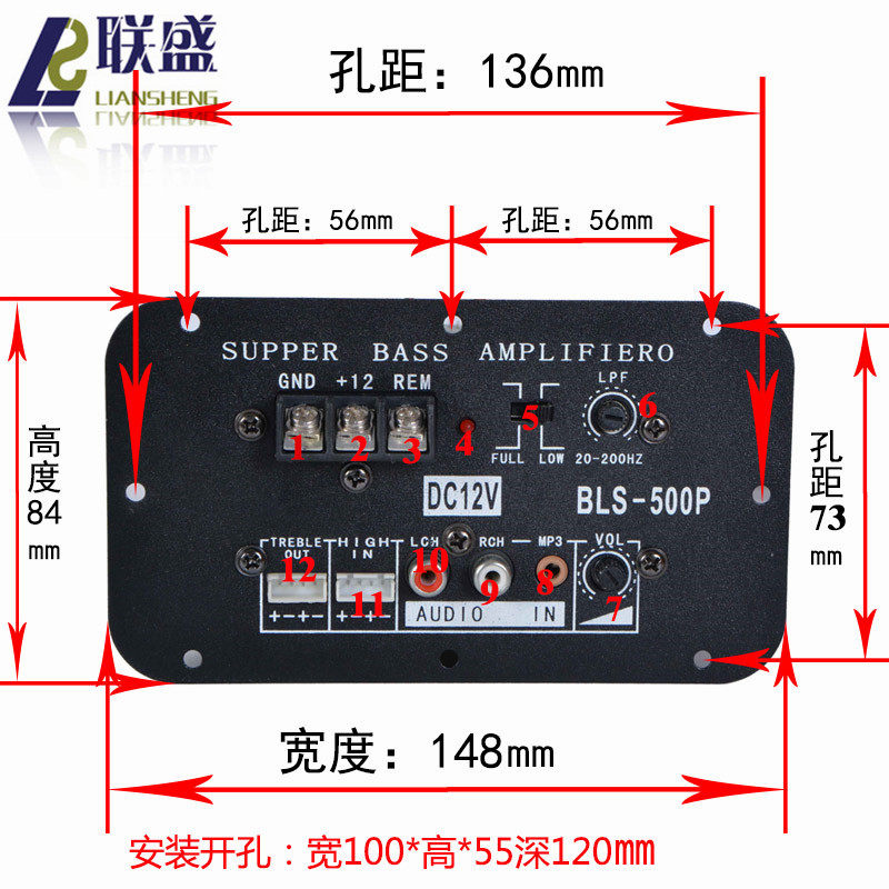 500W car 12V subwoofer power amplifier board high-power audiophile audio board 8 inches 10 inches 12 inches gun core